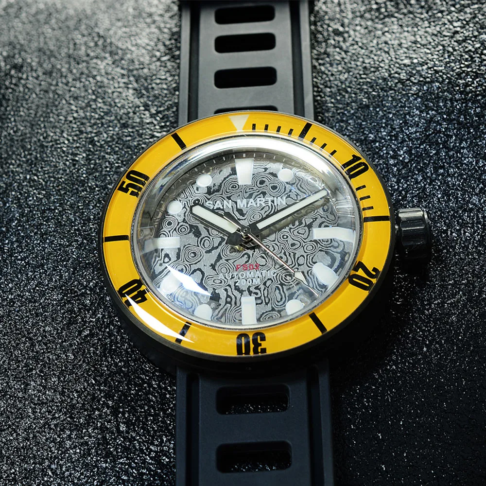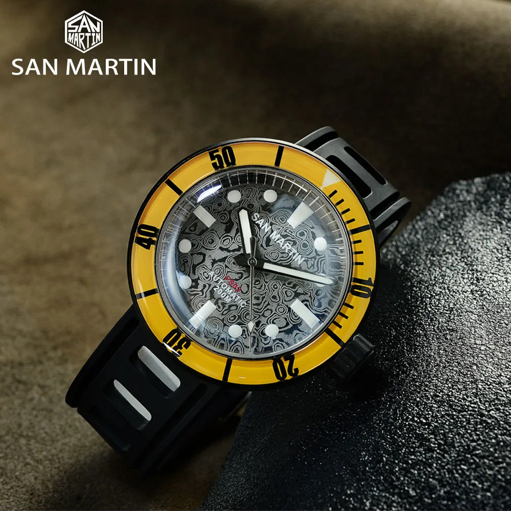 San Martin Damascus Steel Diving Watch Men Mechanical Watches ETA2824 Sapphire Rotating Bezel 200 M